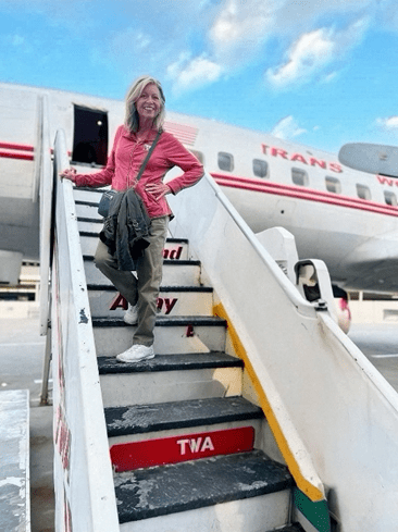 To top off our evening of time-traveling tourism, we took a stroll across the old tarmac to meet “Connie,” the lovingly restored Lockheed Constellation aircraft that once ruled the skies in the late ’50s. Connie came complete with retro luggage (picture Samsonite and American Tourister) in the cargo hold and a cheerful (or possibly alarming) color scheme of red, brown, yellow, and orange. According to a vintage brochure, Connie’s interior was designed in “eye-soothing green, brown, and beige,” (!) which is marketing speak for “your grandparent’s living room.” But somehow, it worked for that moment in time. We’ve come a long way, baby. Well, that’s debatable at times but at least when it comes to our appreciation and use of the color wheel.
