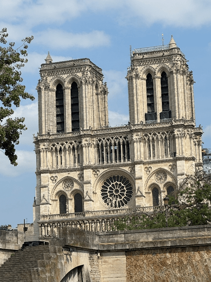 Notre-Dame Cathedral. The restoration following the 2019 fire is nearly complete, and WOW, it’s magnificent. “Awe inspiring” doesn’t quite cut it. “Glorious,” “resplendent,” “breathtaking” – I’m running out of adjectives here, but you get the point. It’s just beautiful. Pro tip: If you want to avoid waiting in the massive line of tourists, try visiting during mass. Not only is it an incredible and moving experience, but the line is surprisingly shorter. (I’m not saying it’ll get you into heaven faster, but hey, it’s worth a shot.) After our impromptu mass, we strolled across a bridge over the Seine and were treated to the quintessential Parisian scene as we were serenaded by musicians with accordions, cellos, and violins.
